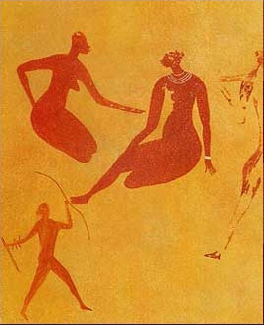 En remontant aux premières représentations de la sexualité occidentale, on trouve un satyre poilu et jubilant, aux pieds de bouc, poursuivant une nymphe gracieuse, tantôt joyeuse tantôt effarouchée ou appeurée, semblant parfois lui indiquer le buisson dans lequel elle va se cacher, exprimant souvent la crainte du viol imminent.