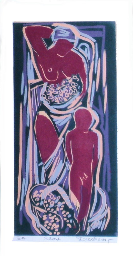 femme et enfant Linogravure